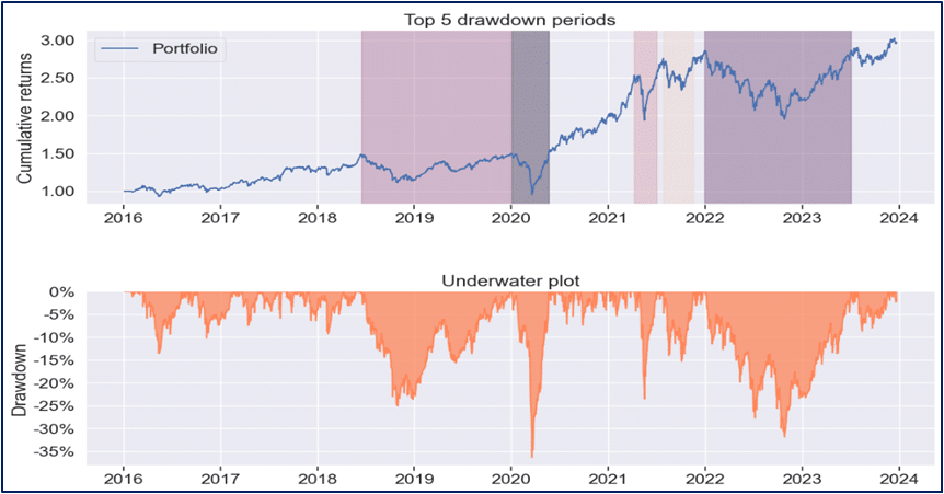 Figure4.5 Maximum Drawdown Chart of Monthly Frequency Investment Portfolio. Data Period: 2016/1-2023/12