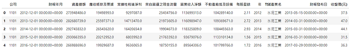 data_price = data_price.rename({'證券代碼':'公司'}, axis=1) # 改名字data_price['年'] = data_price['年月日'].dt.year - 1 # 改成財報年