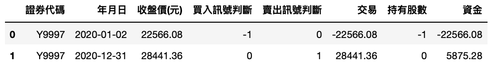 # 第一天買入,最後一天賣出