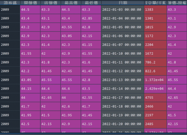 data=tejapi.get('TWN/EWNPRCSTD' ,chinese_column_name=True )