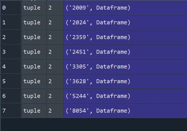 use the pandas groupby function , and we have to put there into a list ,so we can observe the data