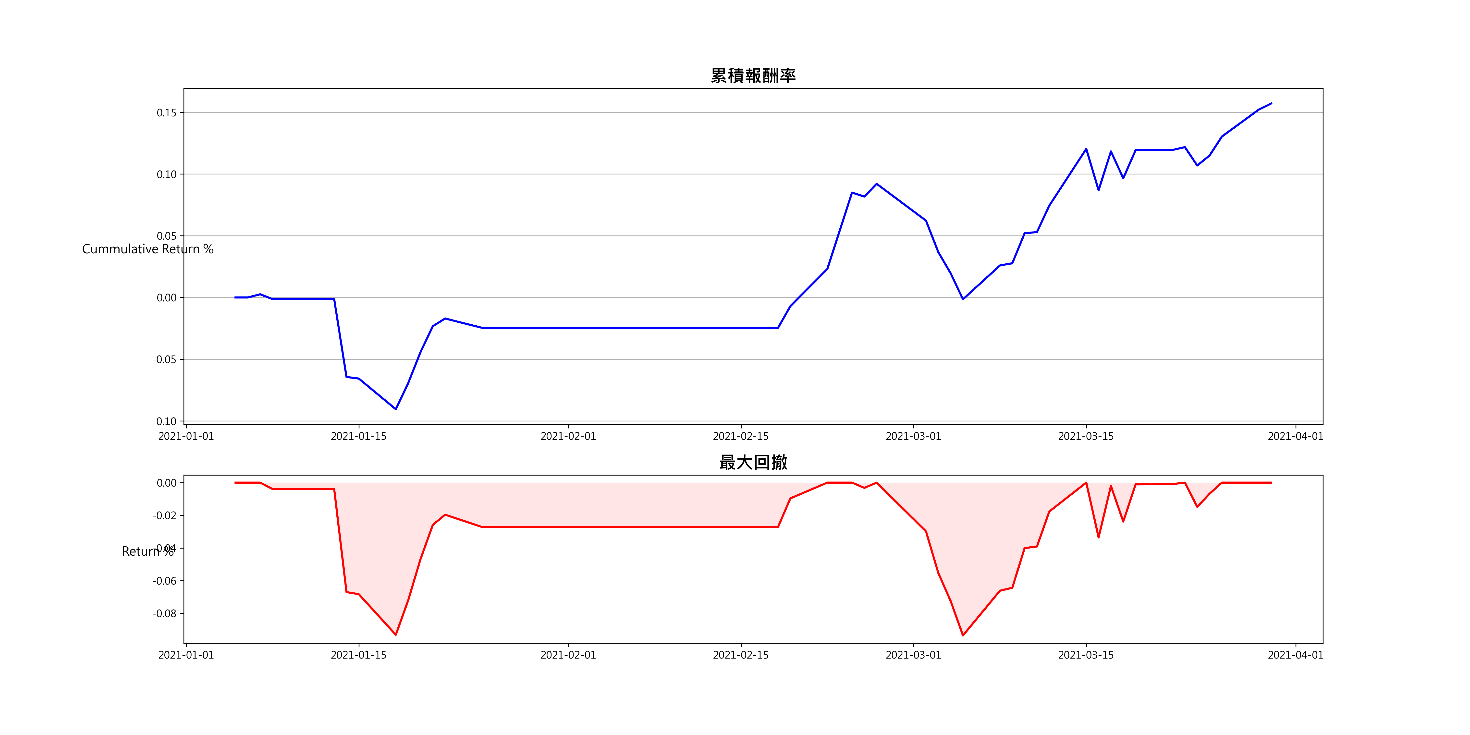 Spread_2021_01_03['2609 陽明'] * 1 + Spread_2021_01_03['2603 長榮'] * -1], default=np.nan)Spread_2021_01_03['累積報酬率'] = (Spread_2021_01_03['策略報酬率'] + 1).cumprod() -1