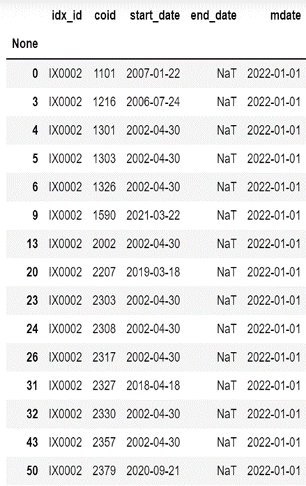 Loading Index Data Period: 2013.01.01–2022.11.24 Loading 0050 Constituent Stocks with filtering based on the “end_date” column to select stocks that are currently part of the constituents.
