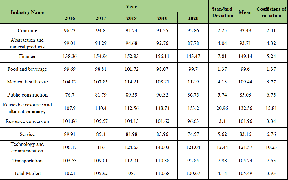 Table 3: Industry Total Carbon Emission Index from 2016 to 2020