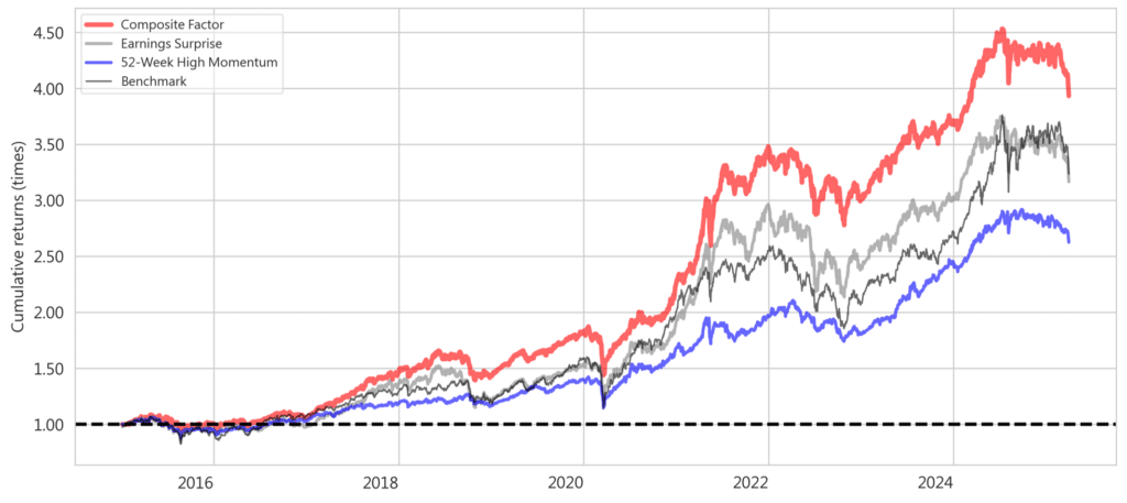 Figure 3: Cumulative Return of a Factor Strategy – highlighting how factor data supports performance backtesting to discover alpha-generating strategies.