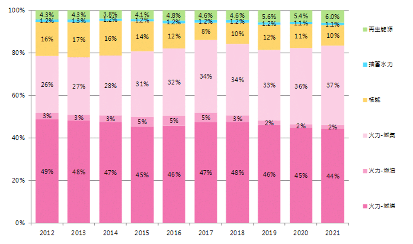 【Figure 1: Taiwan’s power generation structure from 2012 to 2021】