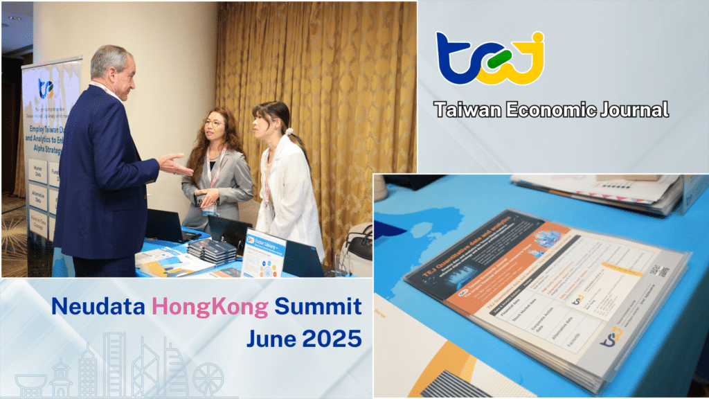 In June 2025, Taiwan Economic Journal (TEJ) was invited to participate in the Neudata Hong Kong Data Summit, joining hedge funds, data scientists, and vendors from around the world to explore how alternative data is driving alpha generation. Following our appearance at the London Summit earlier this year, TEJ continues to engage with global institutional investors—this time in Asia—by showcasing our deep and localized market datasets for Taiwan equities.