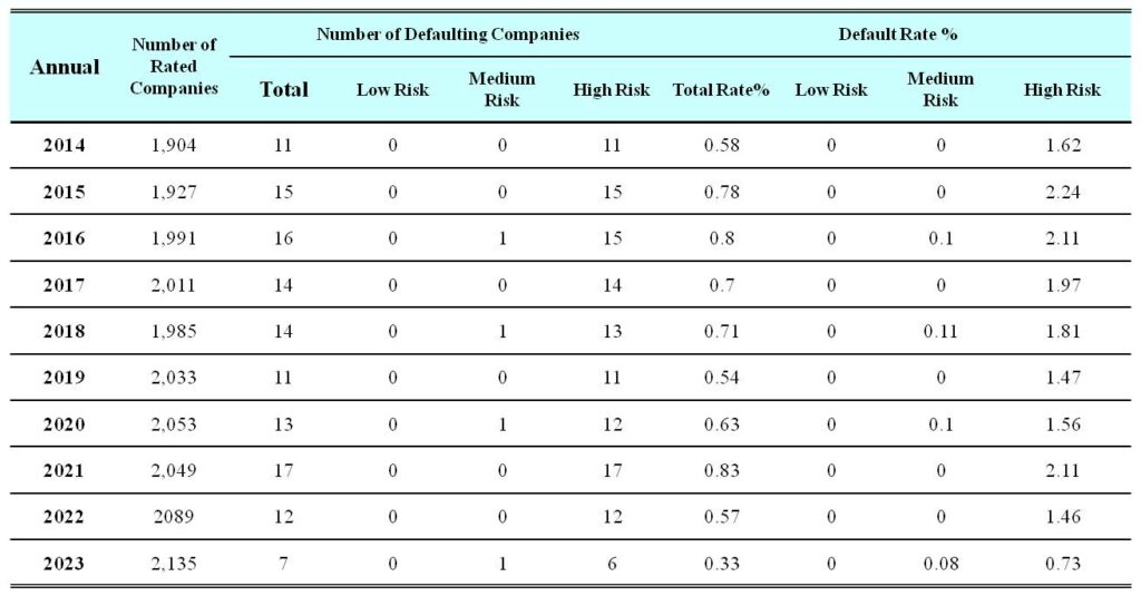 Overall ROC of the TCRI™ in the past 10 years was 88%-97% and an average of 93%, which surpasses the standard of 70% in the Corporate Credit Rating Model Technical Manual.