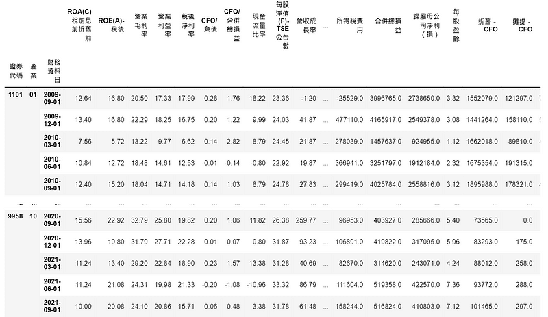 merge['產業'] = merge.index.get_level_values('證券代碼').map(industry_code)merge = merge.reset_index().set_index(['證券代碼', '產業', '財務資料日'])