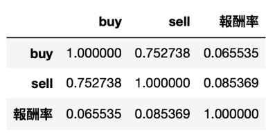 result[['buy', 'sell', '報酬率']].corr()