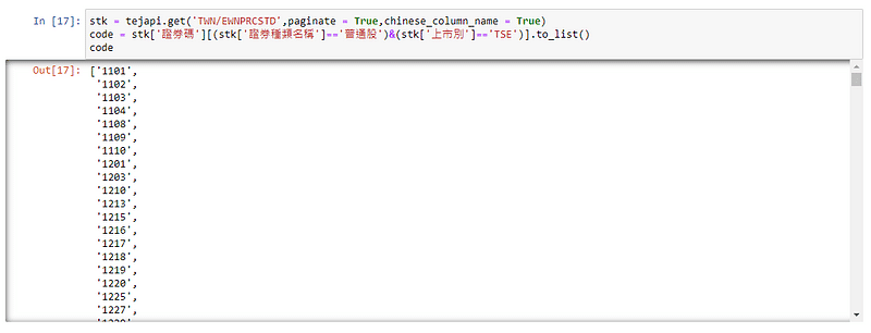 code = stk['證券碼'][(stk['證券種類名稱']=='普通股')&(stk['上市別']=='TSE')].to_list()