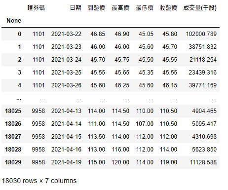 stock_price['日期'] = stock_price['日期'].apply(lambda x: pd.to_datetime(x).date())