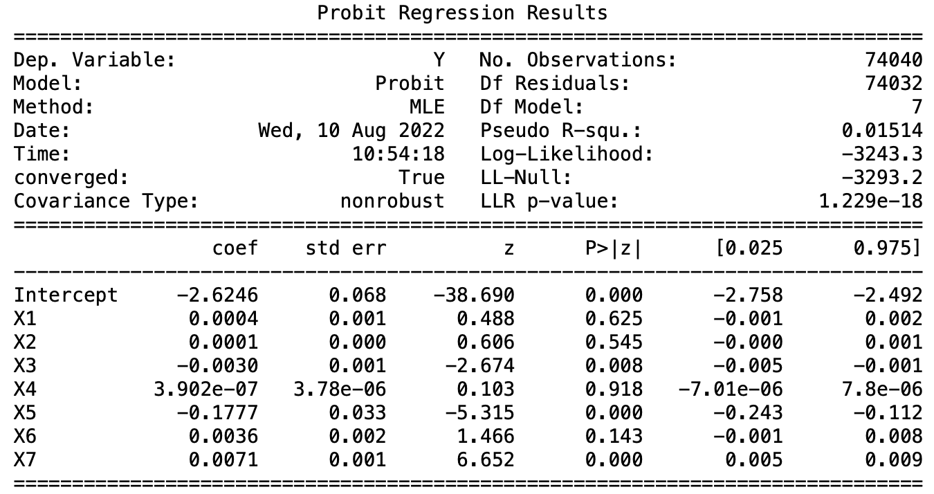 變數X1在Logit模型中是不顯著的,而X2、5、6在三種模型中皆具有顯著性,其預測的結果也與我們直觀來說是符合的。以ROA舉例,當ROA越高公司利用資產獲利的能力越佳,倒閉的可能性越低,係數為負,符合預期。