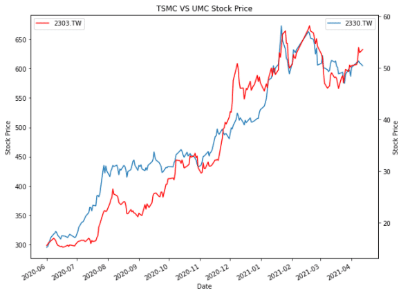 plt.title('TSMC vs UMC')