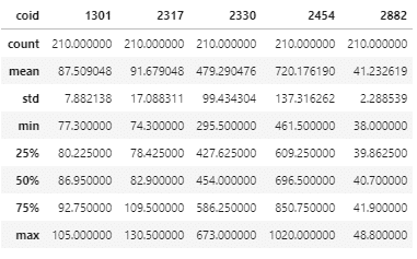 我們可以透過pandas用一行指令的方式就將該標的的敘述統計值給呈現,這其實在資料處裡第一步是一個很一目了然的方式~