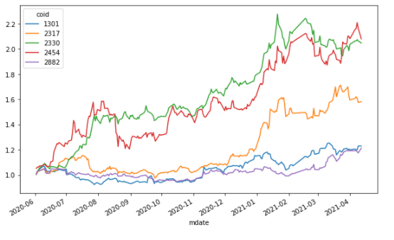 tickers = ['2330', '1301', '2317', '2454' , '2882']