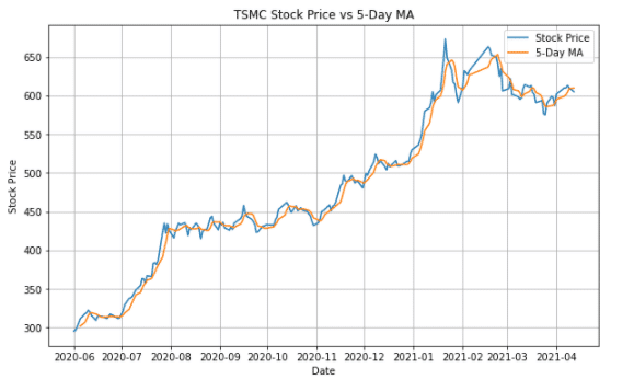 TSMC['5_MA'] = TSMC['close_d'].rolling(5).mean()