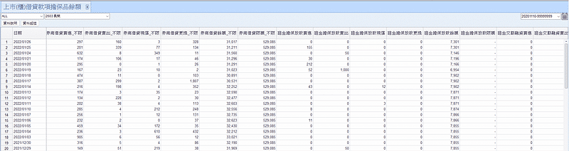 圖2.B 個股特定區間借貸款項擔保品餘額資料-以長榮(2603.tw)為例