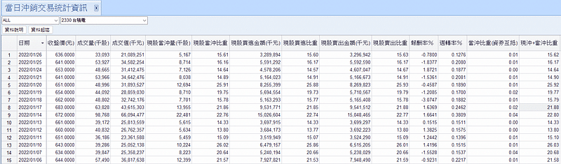 1. 當日沖銷交易統計資訊
