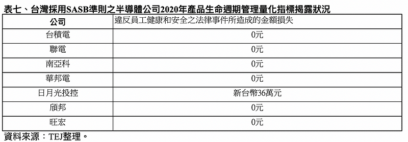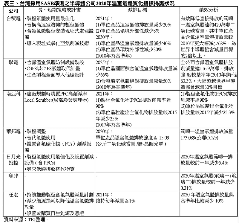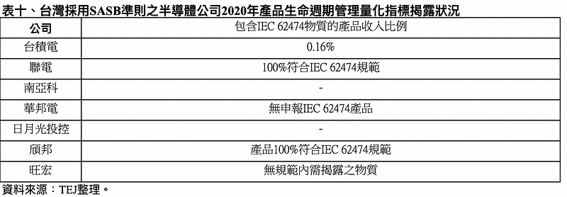 2020年歸屬SASB半導體產業共有311家,其中78家有出具永續報告書。本文篩選出依循永續會計準則委員會(SASB)之半導體業準則的7家業者:台積電、聯電、南亞科、華邦電、日月光投控、頎邦、旺宏,依SASB準則之揭露主題,說明各家公司所揭露的相關指標及狀況。