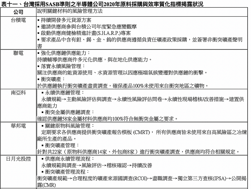 以下為SASB準則中半導體業之各項重大揭露議題: