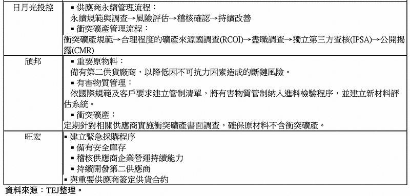 企業的永續經營必須建立在穩健的財務基礎之上,而SASB準則正是在關注影響企業財務績效之相關ESG指標。透過觀察上述7家半導體業者可以發現,部分量化指標(如總能源消耗量、有害廢棄物)資訊揭露充足且能反映對ESG影響,建議未來納入TESG模型中;反觀部分量化指標(如全氟化合物排放量、使用電網站總能源消耗比例、使用再生能源占總資源消耗比例及有害廢棄物回收比例)雖能反映企業的ESG表現,但公司揭露資訊不多,只能暫時放棄納入,期待未來企業充分揭露後再考量。另外,3個質化指標建議均可做為TESG揭露變數,期待新增的量化及揭露指標能更精準反映公司ESG的表現。未來TEJ將繼續探討SASB各產業準則,篩選出更攸關的量化及揭露變數,優化TESG評估模型。