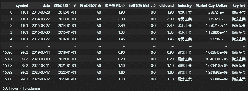 dividend = dividend.drop_duplicates(subset=['公司', '董事會日期']).reset_index(drop=1)