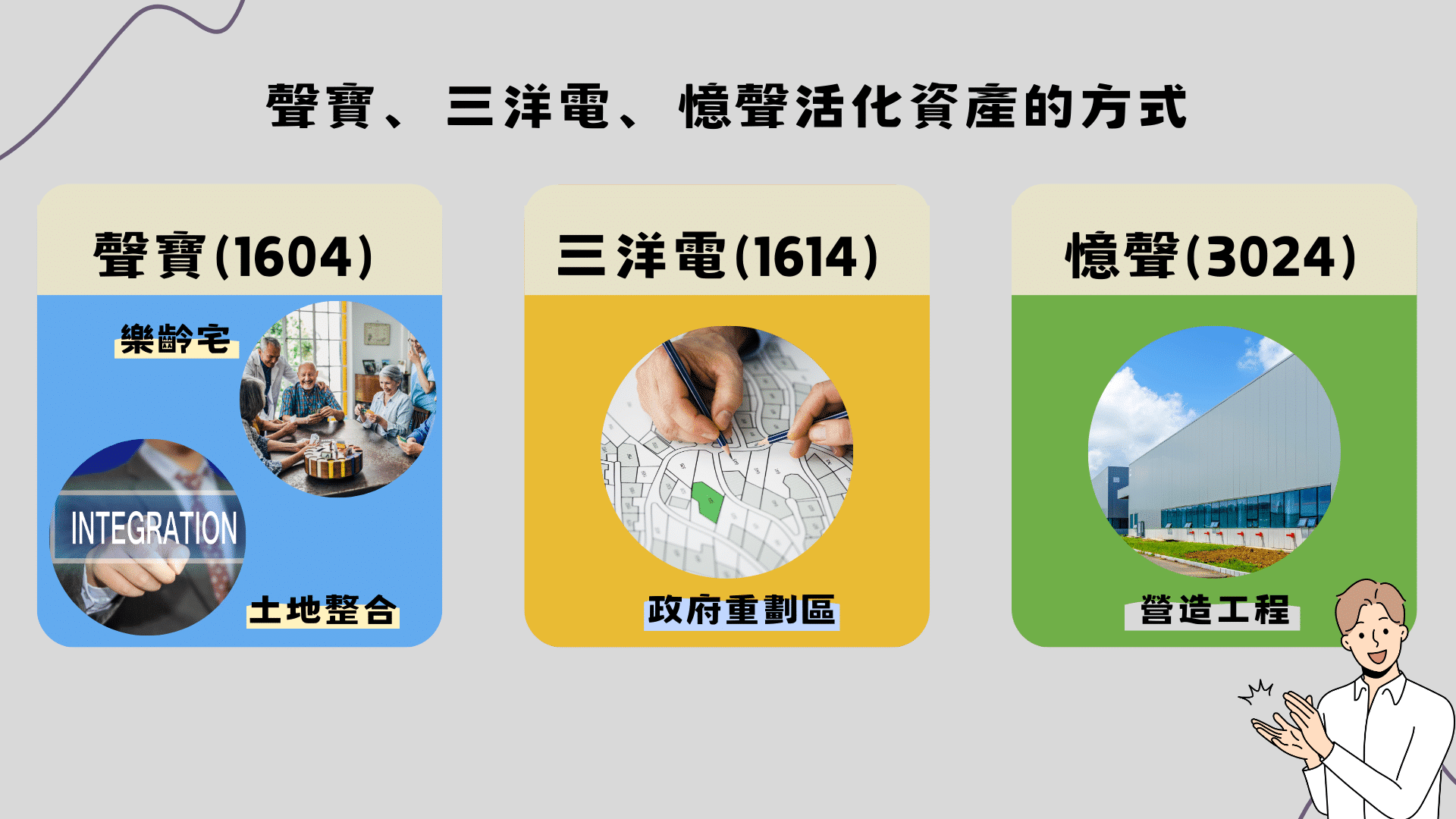 為了因應時局的變化,許多歷史悠久的老字號也整裝待發。聲寶、三洋電、憶聲等公司皆成立於1960~1970年代,成立歷史悠久,故資產活化為他們的一大營運重點。