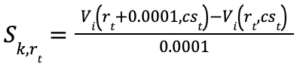 rt :t天期無風險殖利率曲線 cst :t天期信用價差曲線 Vi :金融工具i市場價值,為cst與rt的函數 |