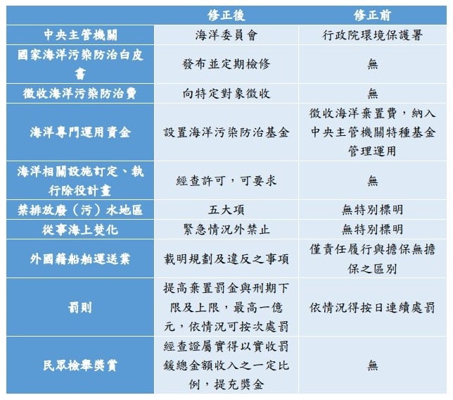 圖一、海汙法修正前後比較。資料來源:全國法規資料庫