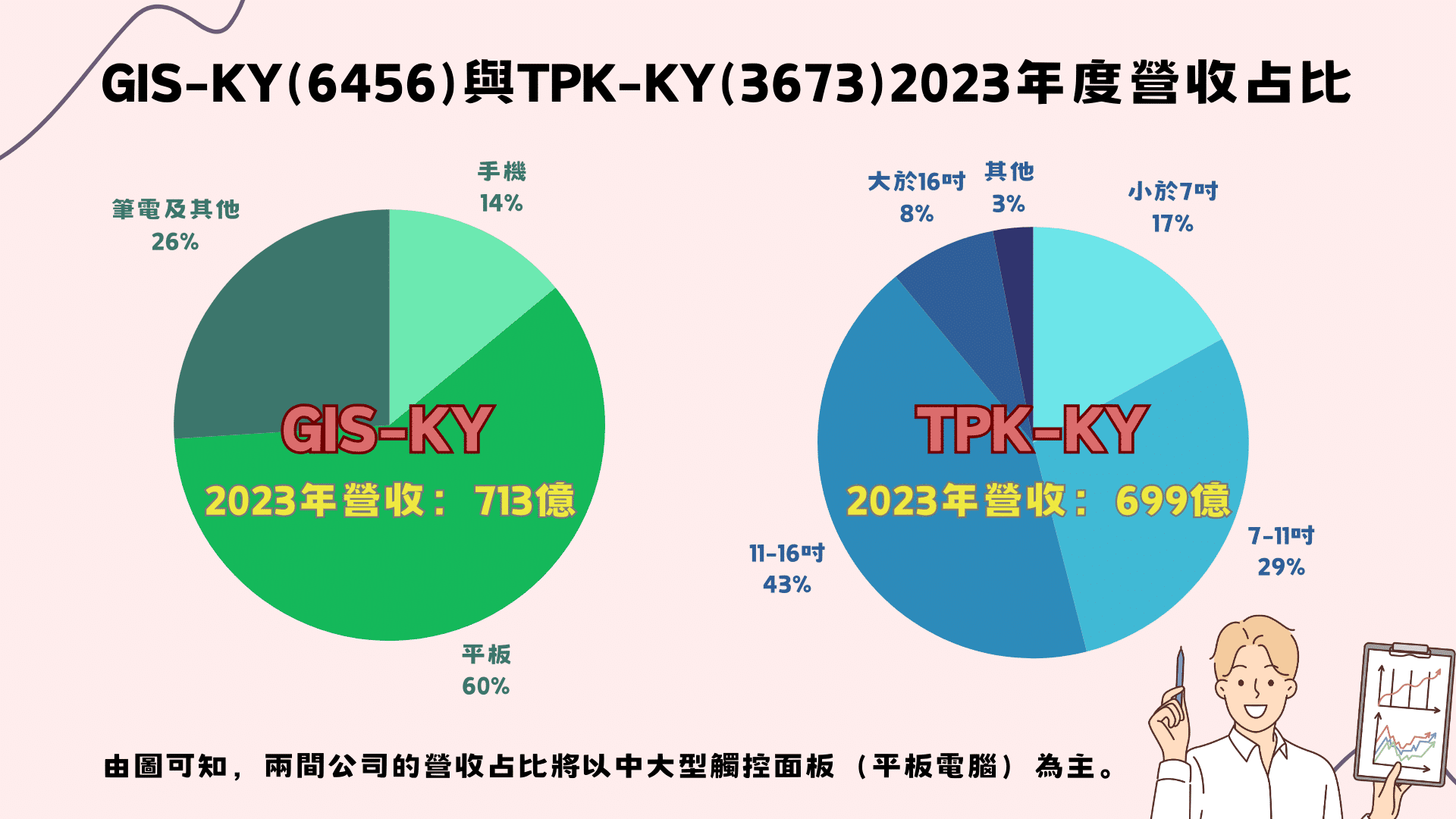 觸控面板產業普遍在2023年出現巨幅衰退,原因不外乎正在經歷去庫存的產業循環痛苦期及消費電子整體需求萎靡所致。衰退最大的主要為觸控面板雙雄GIS-KY及TPK-KY,在主要出貨商蘋果(Apple)的整體出貨下降的情況下,兩者都受到重傷害。其中能在大環境劣勢中逆勢成長的為洋華及富晶通;檢視洋華其營收組成,觸控模組營收占比僅24%,而電線電纜占比達76%,雖觸控模組營收衰退,但受惠國內能源政策及台電電力設施工程增加而抵銷衰退幅度,故營收僅小幅成長6%;而富晶通主要生產利基型觸控模組,在航空業新機、改機需求下,航空應用觸控產品營收大幅增加,故使富晶通營收小幅成長3%。