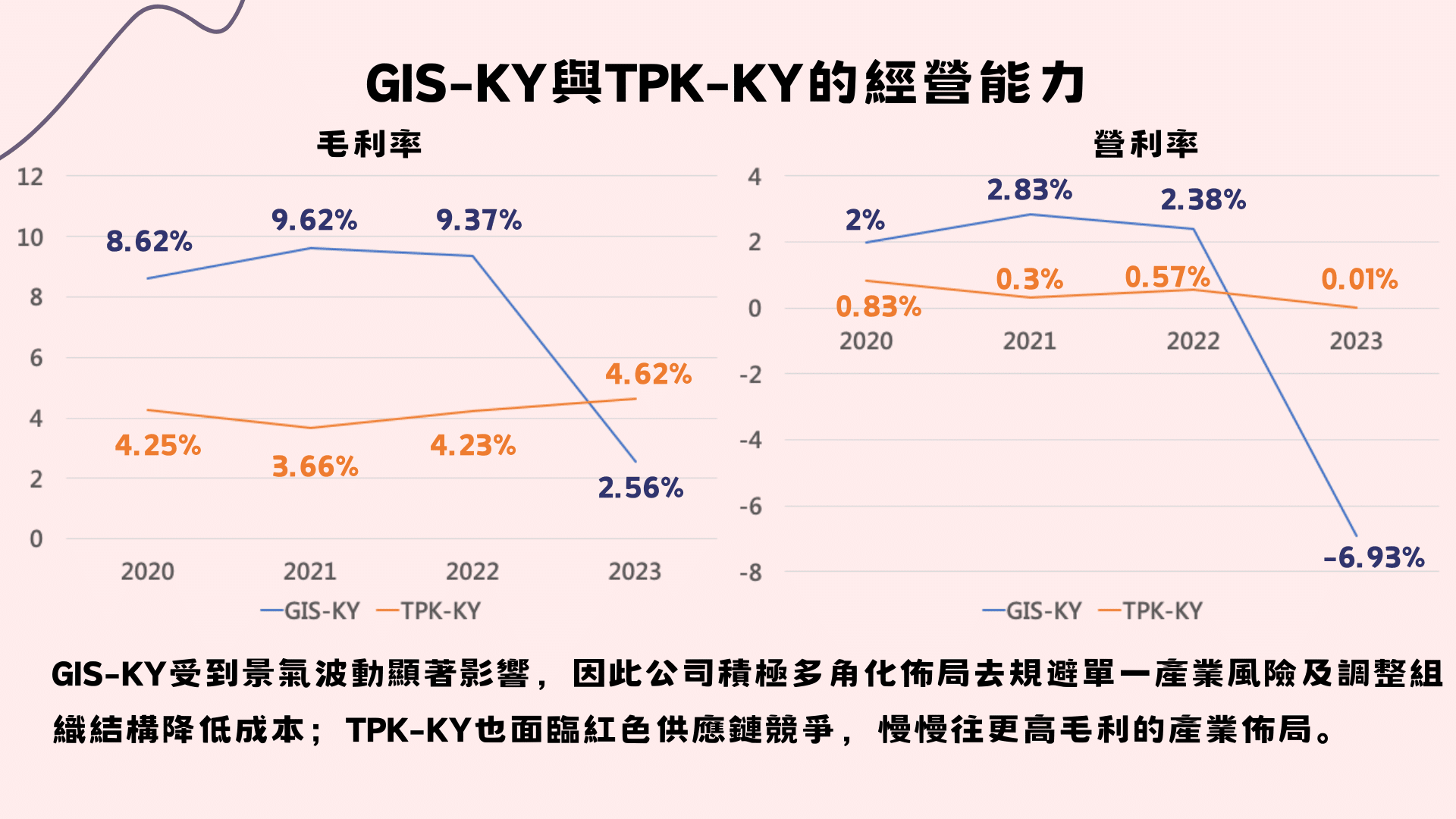 為避免陷入蘋果讓供應鏈自相殘殺的陷阱,GIS-KY及TPK-KY選擇積極轉型,尤其對GIS-KY來說毛利率下降的可怕,以往都能保持毛利率8-9%,但卻在2023年僅剩2.56%,營業利益更是直接翻負,而TPK-KY也在2023Q4出現營業利益虧損,對產品組合做出改變迫在眉睫。