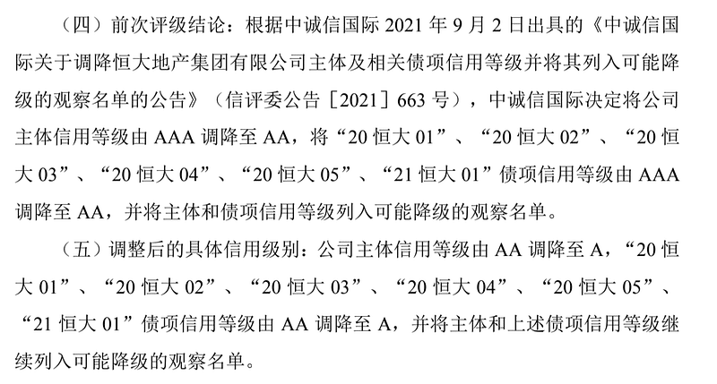 2021年4月12日 恒大集團發行21恒大01 欲向市場籌資82億元人民幣,此時中國本土信評機構將此無擔保債券評級為最佳的3A級,公司公告資訊如下。