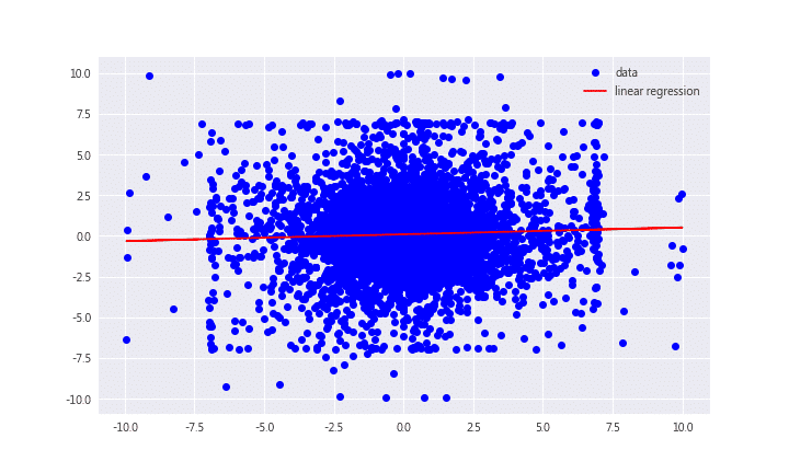 線性回歸是在資料點中找出規律、畫出一條直線的專業說法,而在簡單線性回歸中,我們只需要決定自變數(x)應變數(y),或更直接一點,舉例來說,我今天想用今日報酬率預測明日的報酬率,根據這個目的我們的自變數(x)為今日報酬率,應變數(y)為明日的報酬率。