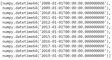 接下來以迴圈進行每年報酬率計算,以下內容以第一年 (date = ‘2008–01–01’)的資料處理情形幫助理解,完整迴圈請參考完整程式碼。