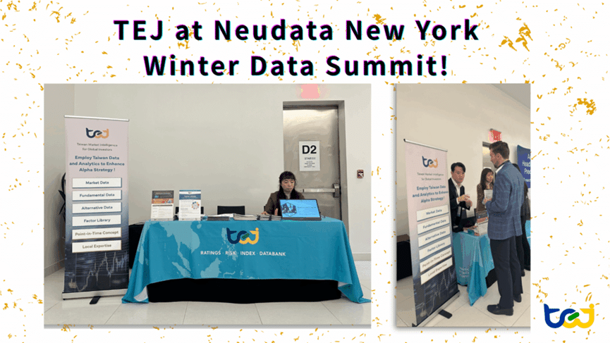TEJ 很高興能參加 2025 年 12 月於紐約舉行的 Neudata Data Summit。這場活動匯聚了量化研究、替代性資料創新與投資科技領域的全球領導者。在整個高峰會期間,我們的團隊與許多投資組合經理、資料科學家與研究人員交流,他們都在積極尋找具有差異化的資料來源,以強化投資模型並擴大對亞太市場的覆蓋。