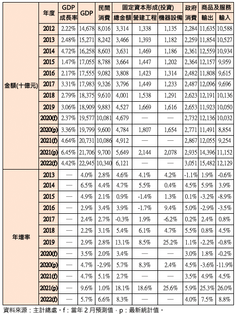 過去兩年來,在疫情肆虐下,對全球經濟衝擊大,但台灣的經濟表現卻超乎預期,相當出色。2020年成長率3.36%,創下2015年以來的最佳成績。而2021年高達6.45%,再創下近11年來的最佳成績。